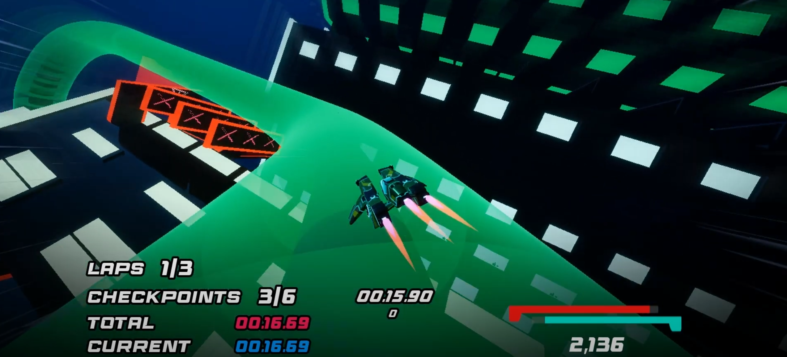 The game is a time trials focused game where you are tasked with getting the best times on each of the three courses.